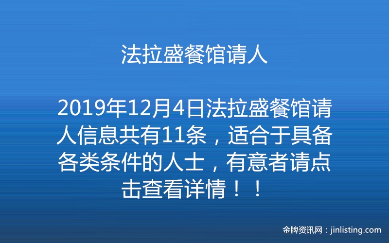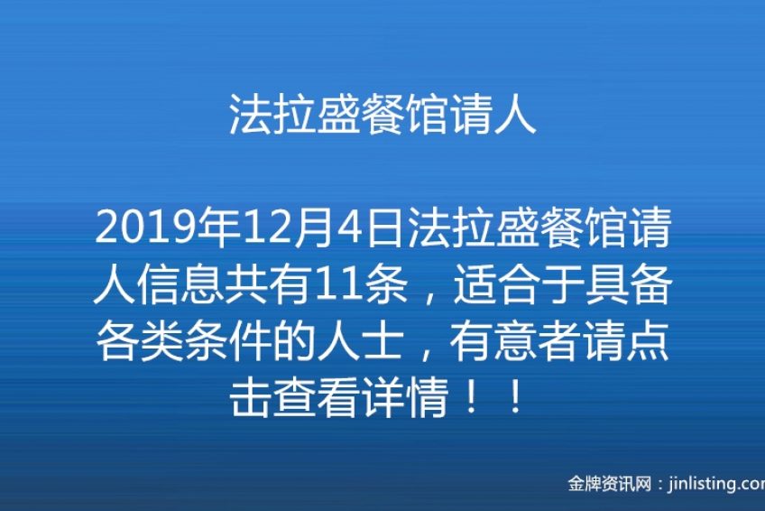 10.法拉盛餐馆请人 “位于法拉盛的餐馆请吧台出餐人员 有做过外卖 20-35岁 会基本英语 工资面议 9292532697”