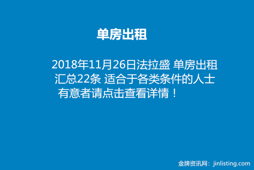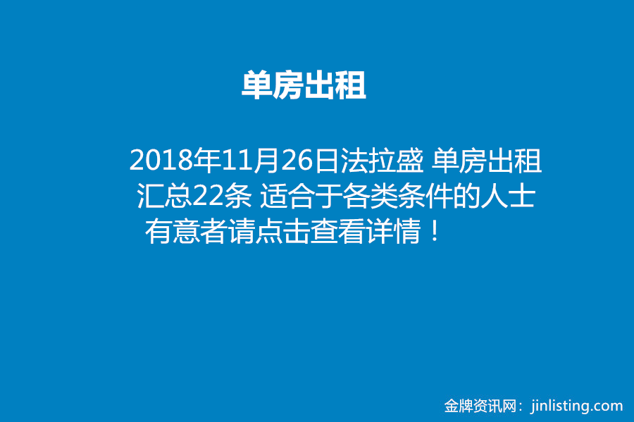 法拉盛163街47av小单房出租:房间两大窗,有简单家具,干净明亮,环境好,高速上网,水电煤网全包交通便,可乘Q27.65.26巴士十分钟到达面街,易泊车无扫街,另可提供固定车位车库适正职少炊单身无吸烟人士。联系电话:929-300-2797