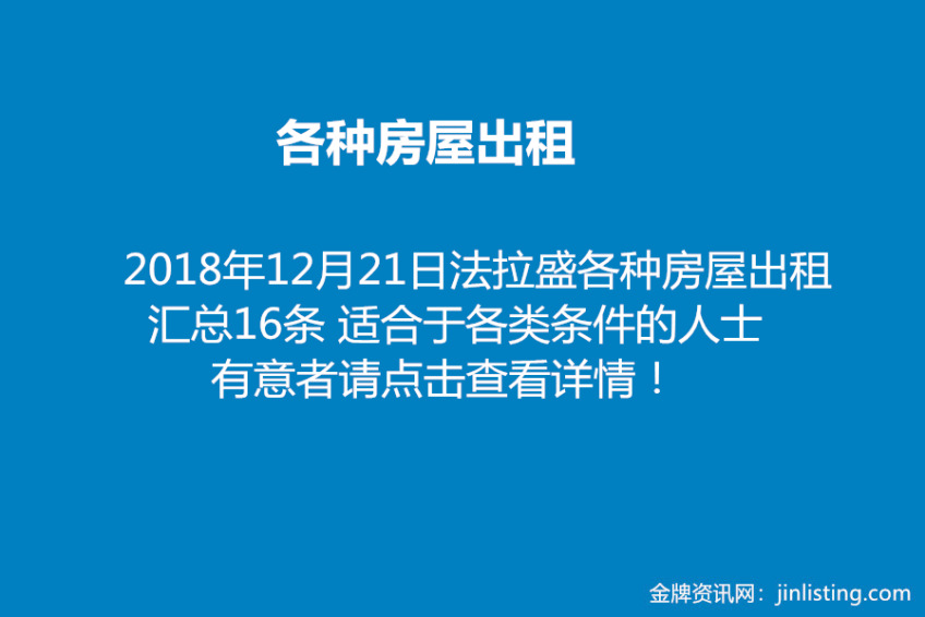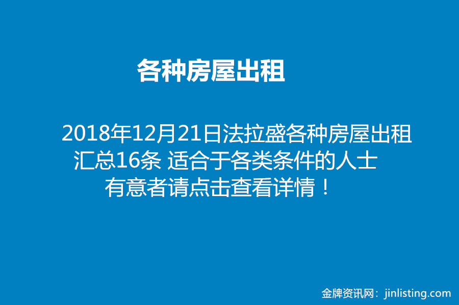 Ash ave & 凯辛纳大道 公寓统仓, 1500 Barclay & Union 一房一厅, 1850 41大道 &博文bowne 一房一厅, 1800 41大道&parson 一房一厅,1700 中国银行后三房两浴,$2800 富兰克林两房一厅,2100 需佣金,电929-530-6636 微信:ny9295306636