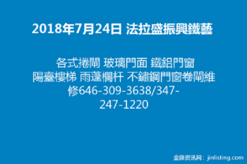 各式捲閘 玻璃門面 鐵鋁門窗 陽臺樓梯 雨蓬欄杆 不鏽鋼門窗卷閘維修646-309-3638/347-247-1220