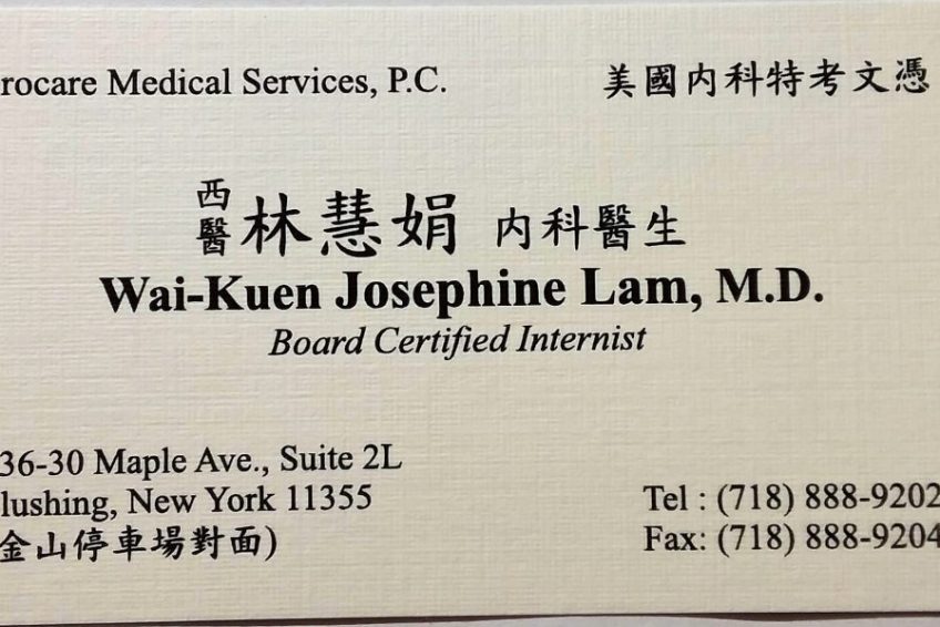 法拉盛西医师/法拉盛 內科/西医 林慧娟 内科医生(718) 888-9202 136-30 Maple Ave #2l, Flushing, NY 11355美国