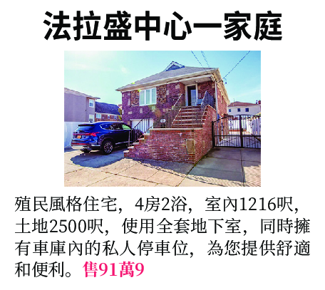 殖民風格住宅,位於法拉盛的中心地帶。這座住宅擁有四間臥室和兩間浴室,