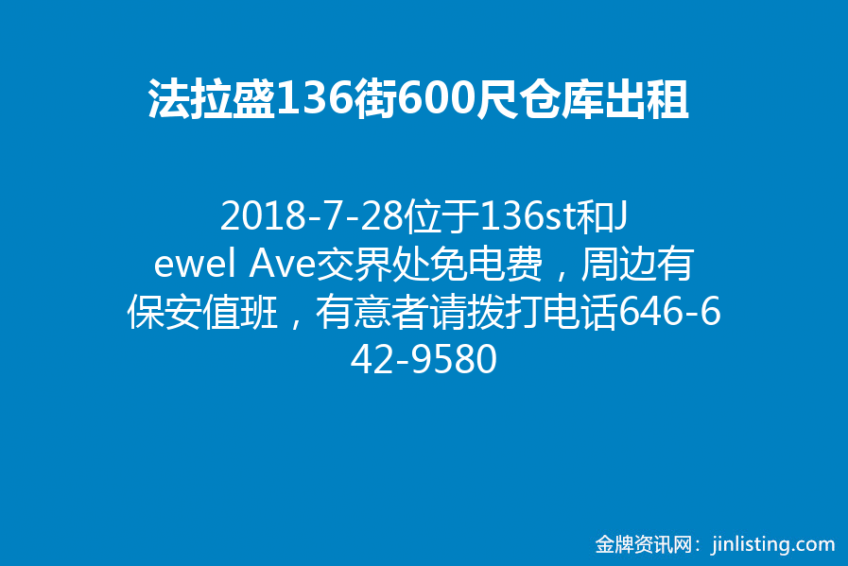 法拉盛仓库出租,面积600尺,位于136st和Jewel Ave交界处,近495和Grand Central PKWY.