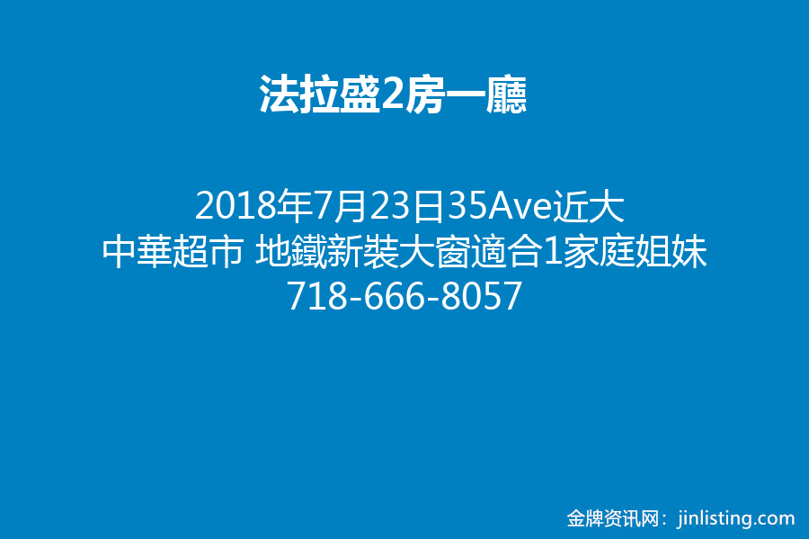 法盛136 35 Ave近大中華超市地鐵新裝修大窗陽臺環境好適合1家庭/姐妹電718-666-8057
