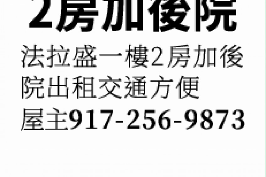 法拉盛一樓2房加後