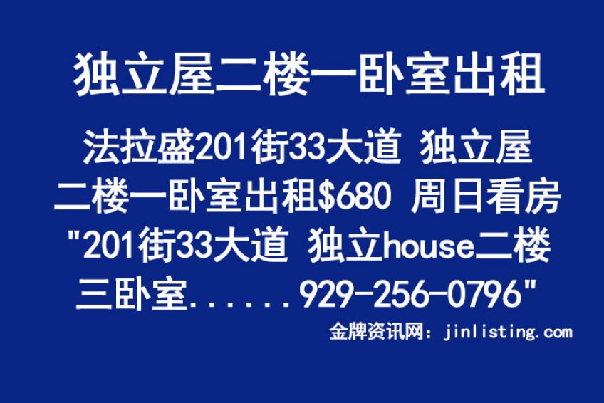 法拉盛201街33大道 独立屋二楼一卧室出租$680 周日看房929-256-0796 “201街33大道 独立house二楼 三卧室中的一卧室出租$680