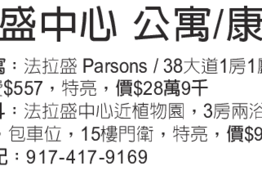 *公寓: 發盛parsons/38 大道1房1廳,管費557,特亮,價28萬9千