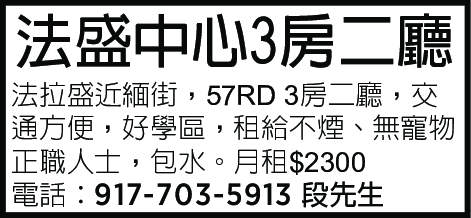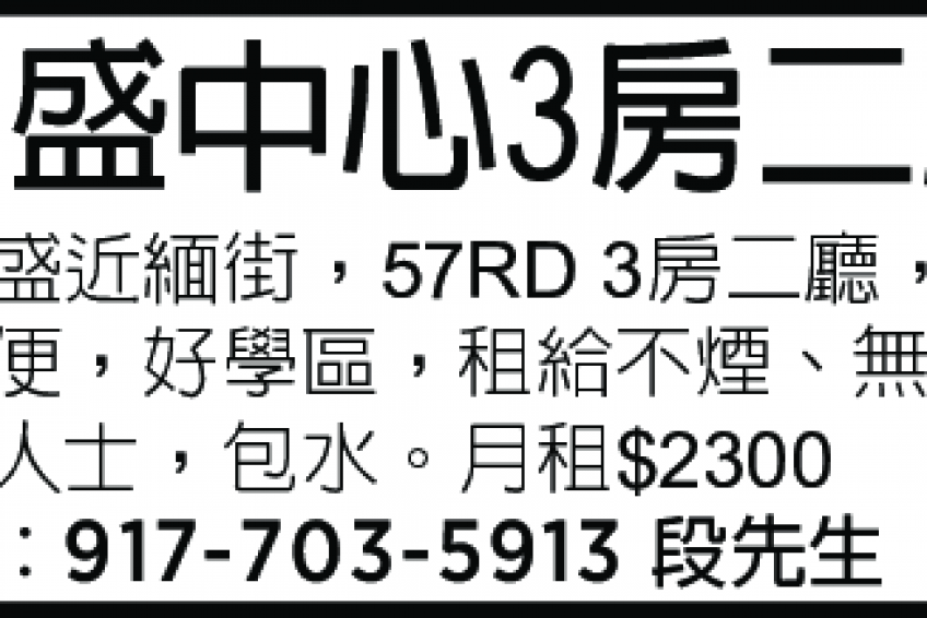 法拉盛近緬街,57RD3房2廳,交通方便,好學區,租給不煙、無寵物正職人士,包水。月租$2300