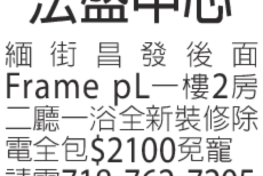 緬街昌發後面Frame pL一樓2房2廳1浴全新裝修除電全包免寵租$2100
