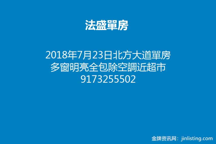 法盛40Ave157街北方大道單房多窗明亮全包除空調門口Q13/68 近超市9173255502
