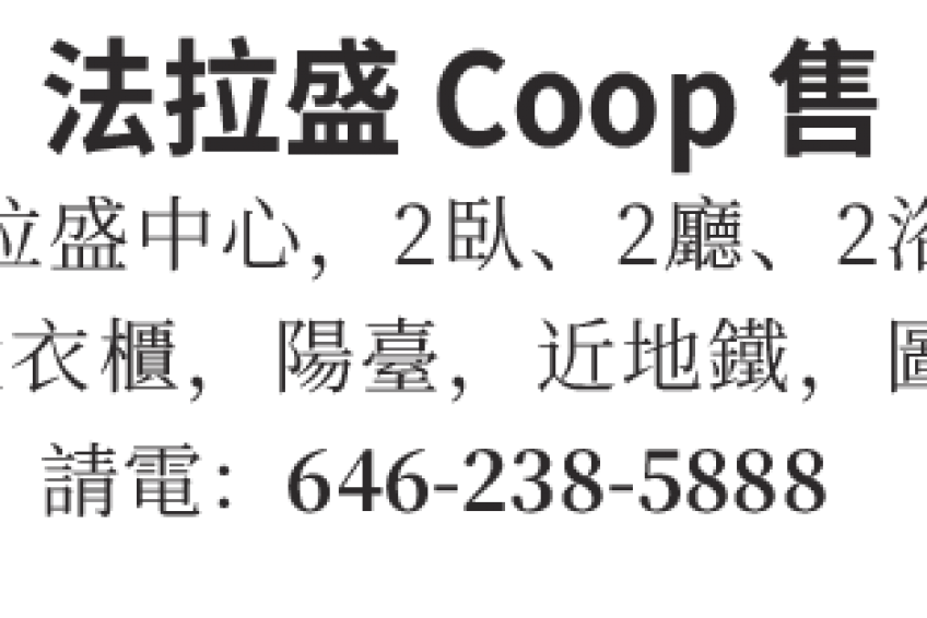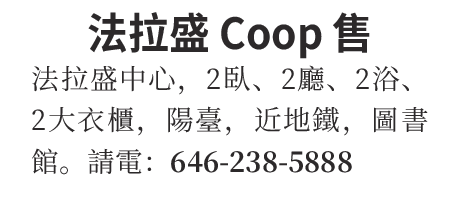 法拉盛中心,2卧、2厅、2浴、2大衣柜,阳台,近地铁,图书馆。