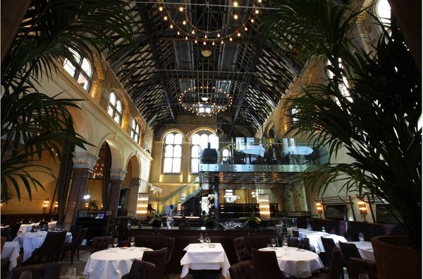 维多利亚时期教堂大厅高挑的穹顶下,米其林一星餐厅在典雅的装饰和轻音漫乐的烘托中充满了古典气质,在这样的环境中享受精致美食,真的令人陶醉。位于伦敦利物浦街车站附近的这间法餐厅自从开始营业就屡获殊荣。