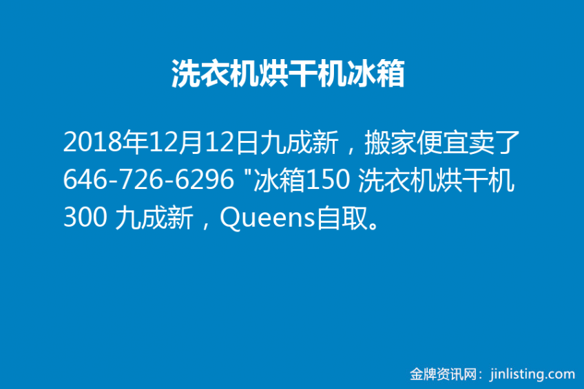 洗衣机烘干机冰箱,九成新,搬家便宜卖了646-726-6296 “冰箱150 洗衣机烘干机300 九成新,Queens自取。