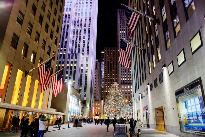 这个优雅的“瀑布”吊灯由14,000颗施华洛世奇水晶组成,于2005年安装,重新打开了观景台,类似于它所在的摩天大楼轮廓–30 Rock。施华洛世奇也是一家水晶设计公司,为洛克菲勒圣诞树提供550磅重的明星。