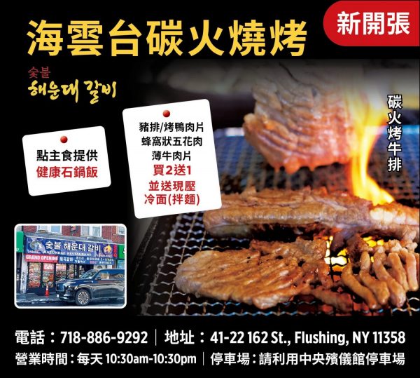 74街的海雲台韓國烤肉老字號結業後,2025年12月份又在法拉盛重新開張了!