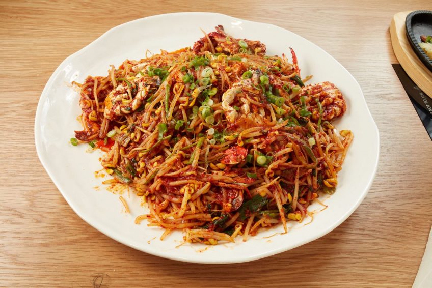 与一般餐厅的冷冻螃蟹不同,“海鲜乐园”(DOSIUHBOO)是鲜活的帝皇蟹,因而吃起来就格外鲜美。“海鲜乐园”端上桌的帝皇蟹是剪断并经过加工的,可以直接用筷子夹着吃,出人意料地简单、方便。