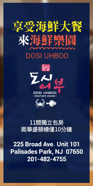 “海鲜乐园”DOSIUHBOO,新泽西独家经营帝皇蟹,健康美味,物有所值,华盛顿桥车行5分钟即到,50个停车位,是接待贵宾的首选。