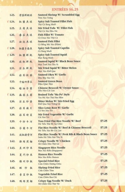 周一至周五,金冠有物美价廉的特价午餐,价格从 $5.75到$7.25不等。