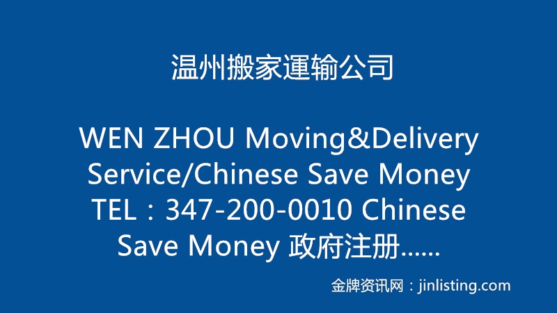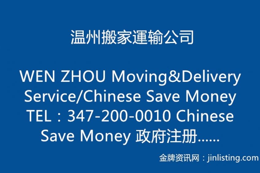 温州搬家運输公司 WEN ZHOU Moving&Delivery Service/Chinese Save Money TEL:347-200-0010 Chinese Save Money 政府注册、大小搬家 免费拆装、精搬各式钢琴 本市外州、公司仓库 价格最低、清理旧家具 House Apartment Studio Professional Piano Moving New York City & Out State Free Onsite Estimate