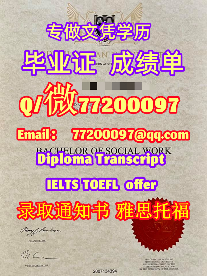 澳洲学历升级ECU毕业证书定制埃迪斯科文大学学位证书Q/微:77200097有ECU文凭证书精仿ECU学位证书能办ECU成绩单制作埃迪斯科文大学文凭证书offerEdith Cowan University Diploma Degree Transcript