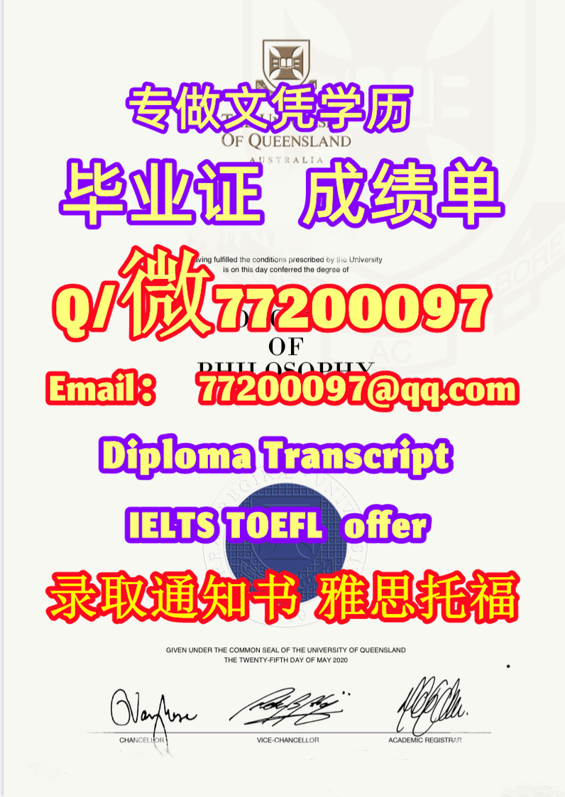 澳洲学历升级UQ毕业证书定制昆士兰大学学位证书Q/微:77200097有UQ文凭证书精仿UQ学位证书能办UQ成绩单制作昆士兰大学文凭证书offerUniversity of Queensland Diploma Degree Transcript