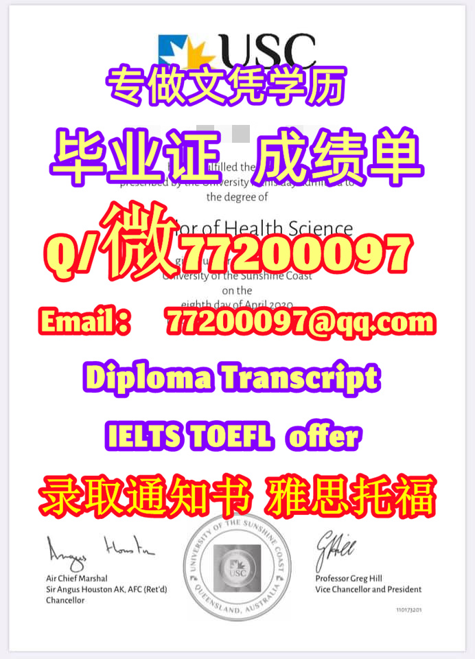 澳洲学历升级USC毕业证书定制阳光海岸大学学位证书Q/微:77200097有USC文凭证书精仿USC学位证书能办USC成绩单制作阳光海岸大学文凭证书offerUniversity of the Sunshine Coast Diploma Degree Transcript