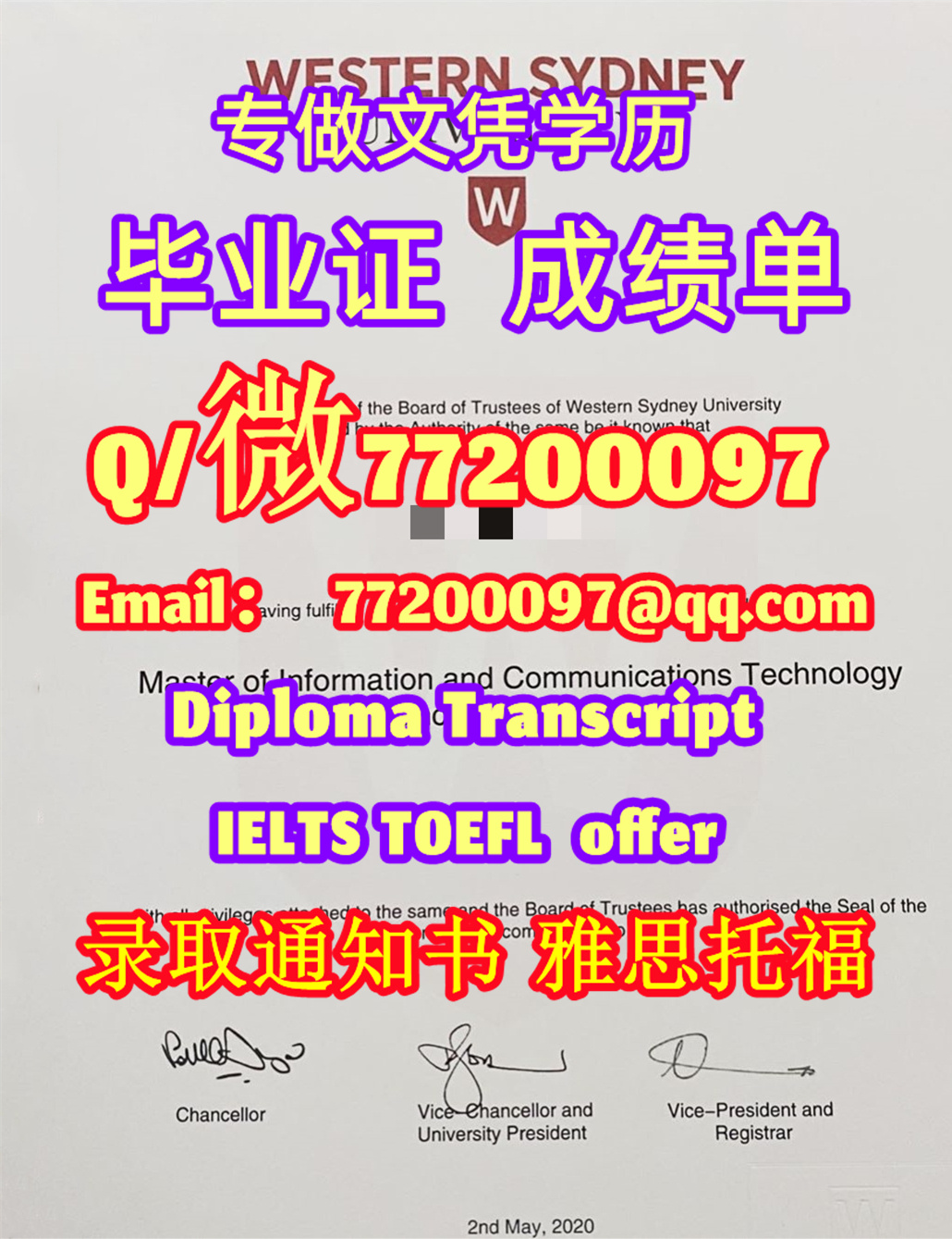 澳洲学历升级UWS毕业证书定制西悉尼大学学位证书Q/微:77200097有UWS文凭证书精仿UWS学位证书能办UWS成绩单制作西悉尼大学文凭证书offerUniversity of Western Sydney Diploma Degree Transcript
