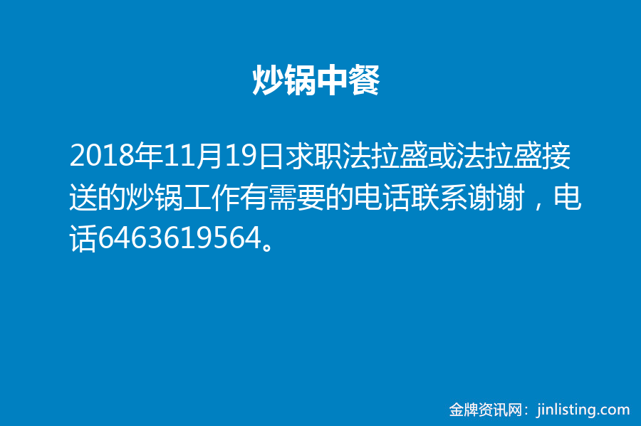 求职法拉盛或法拉盛接送的炒锅工作有需要的电话联系谢谢,电话6463619564。