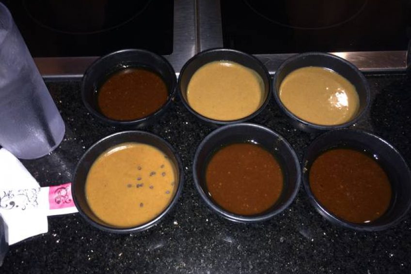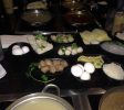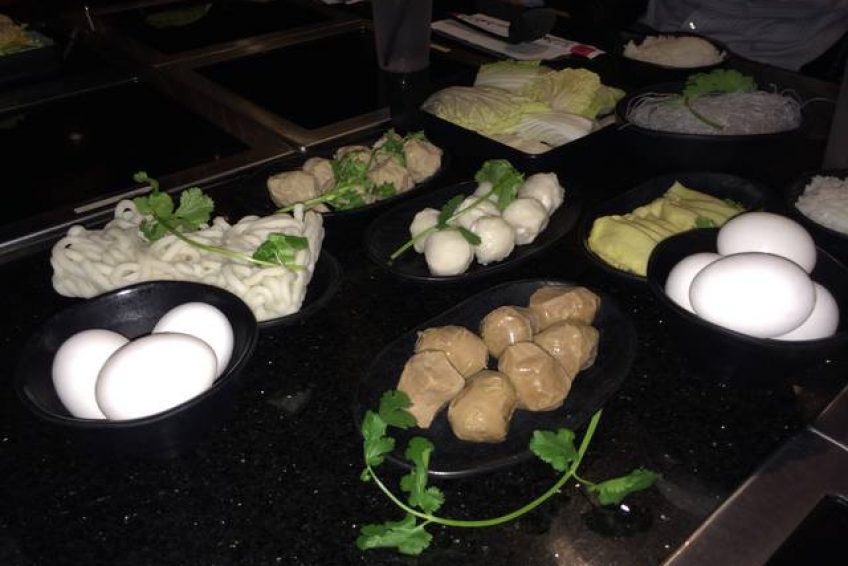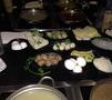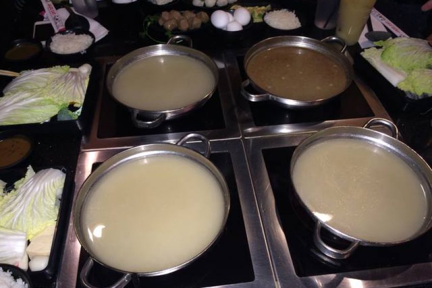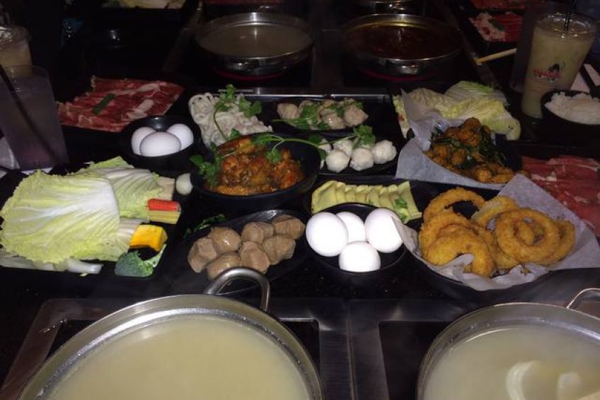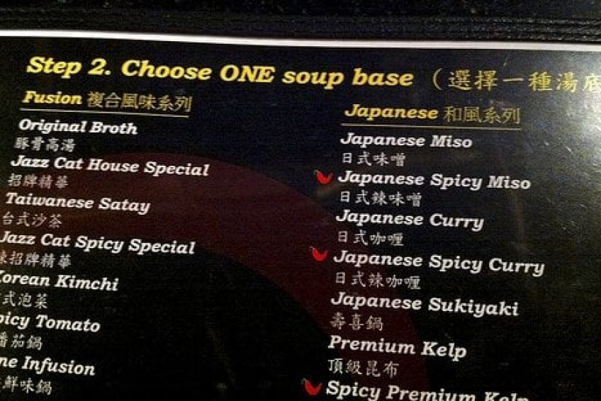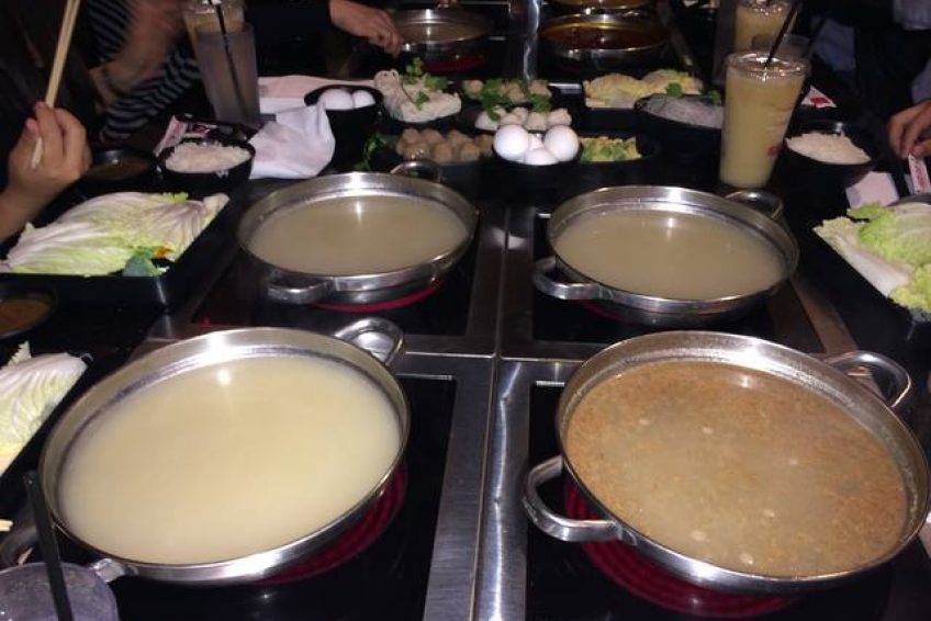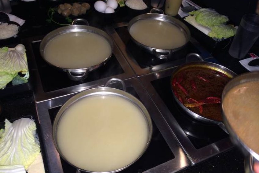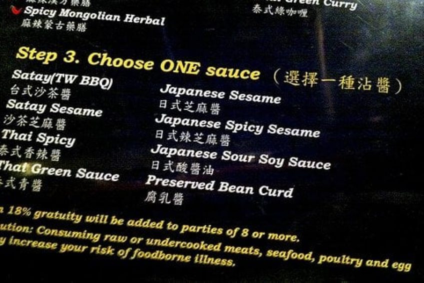 台式小火鍋,這是一家以超多湯頭選擇聞名的時尚­火鍋店,很多朋友慕名而來,排上長長的隊,等待幾十分鐘甚至一個多小時也在所不惜。點菜有三個步驟:Step 1. Choose ONE entree (選擇一種主菜)Step 2. Choose ONE soup base (選擇一種湯底)Step 3. Choose ONE sauce (選擇一種沾醬)