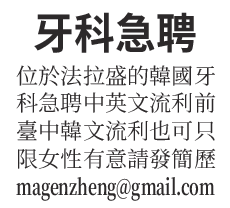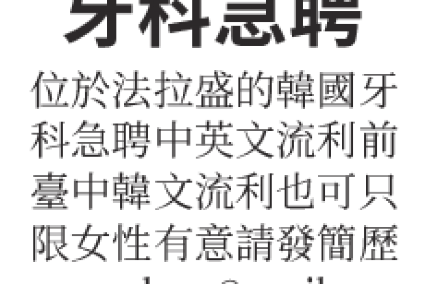位於法拉盛的韓國牙科急聘中英文流利的前臺,中韓文流利也可,只限女性,有意請發簡歷: