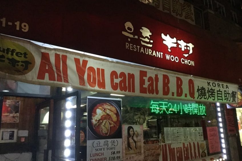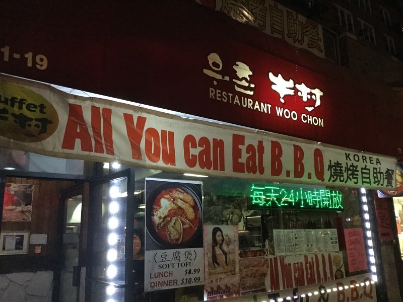 24小时营业的自助烧烤店“牛村”,位于7号地铁终点站,法拉盛图书馆对面,百利停车场就在附近,免费泊车。该店已有30年历史,是缅街最老字号的韩国餐馆。室内装修传统大气,红木围栏让顾客们尽情享受私人空间。