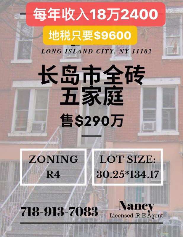 独家上市! Long Island City, 5 家庭全是市场价格,印钞票房子!