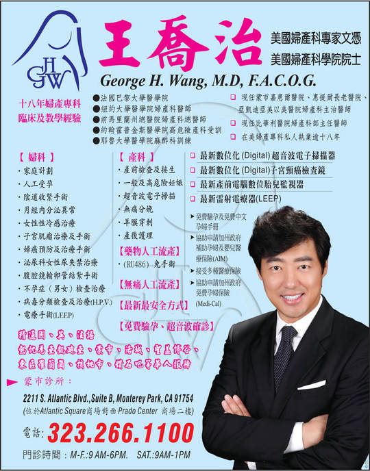 王醫師精通中丶英丶法語 熱忱為阿凱迪亞丶蒙市丶洛城丶聖蓋博谷地區華人服務。