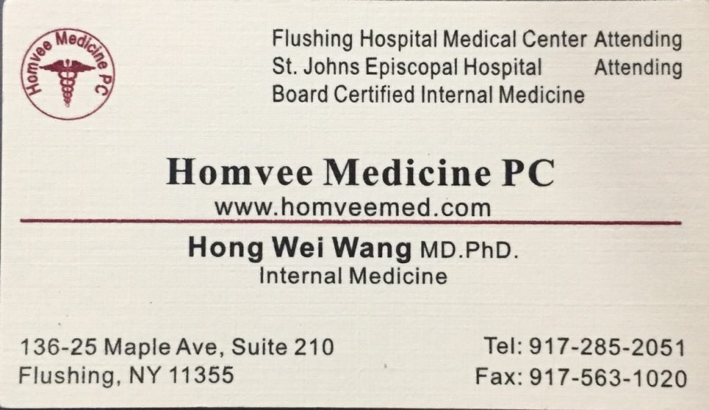 王宏卫医生毕业于河南医科大学医学院,在上海第二军医大学取得博士学位,到美国爱因斯坦医学院做博士后研究工作,主攻方向是肿瘤。在(Bronx-Lebanon Hospital Center)布朗克斯 – 黎巴嫩医院中心内科住院医培训,在哥伦比亚医院做主治医师训练,现任(Flushing Hospital Medical Center)法拉盛中心医院主治医师,2018年在纽约法拉盛开设诊所至今。