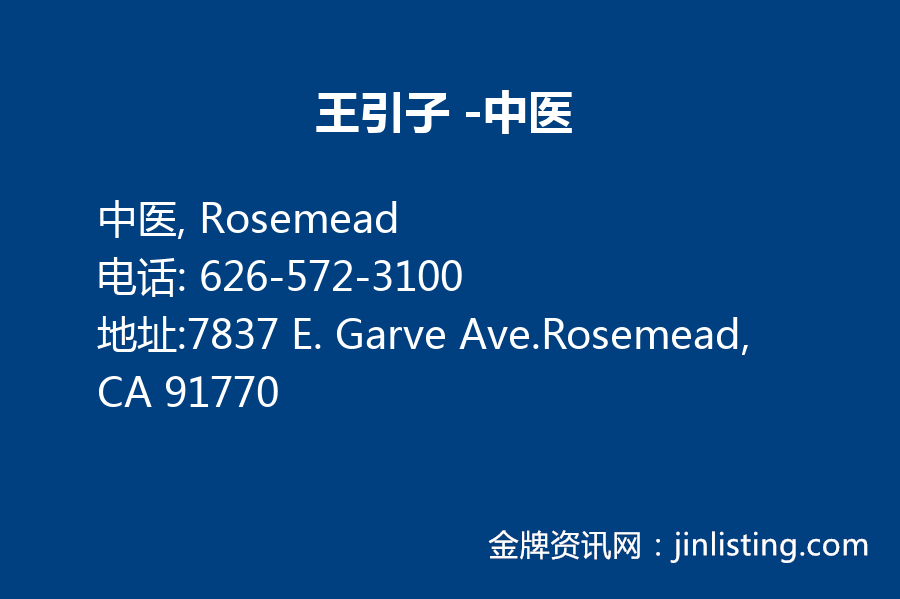 地址:7837 E. Garve Ave. ,Rosemead,CA 91770 電話:626-572-3100 中醫,Rosemead