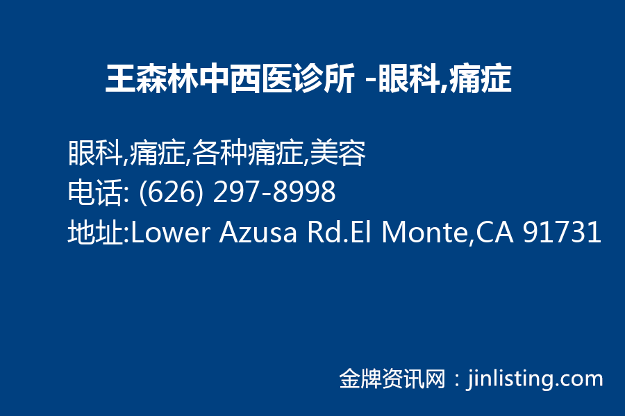 王森林中西医诊所 -眼科,痛症,各种痛症,美容  (626) 297-8998