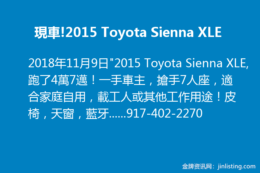 “2015 Toyota Sienna XLE, 跑了4萬7邁!