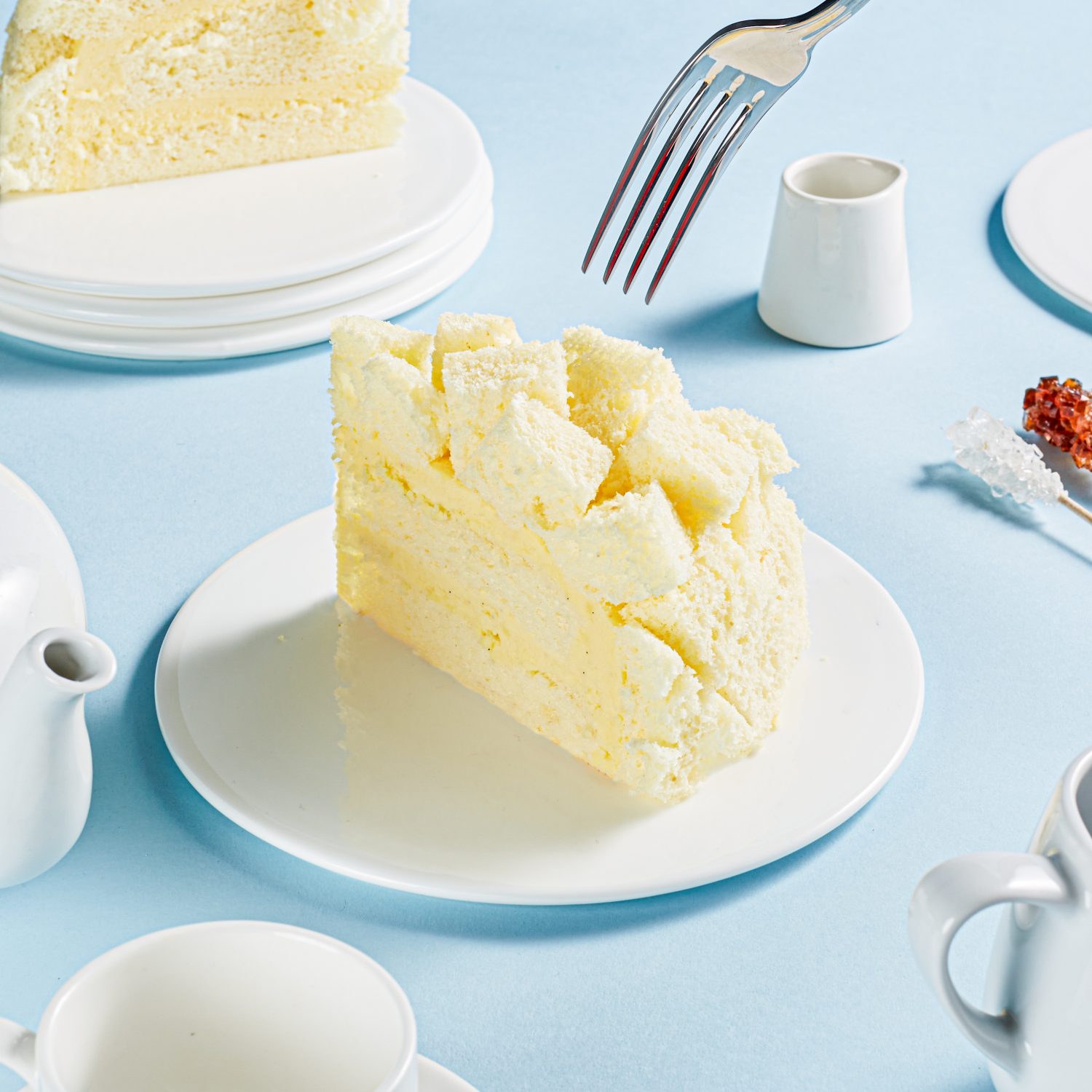 蛋糕的特点是双层经典的海绵蛋糕和美味的香草奶油蛋糕。
