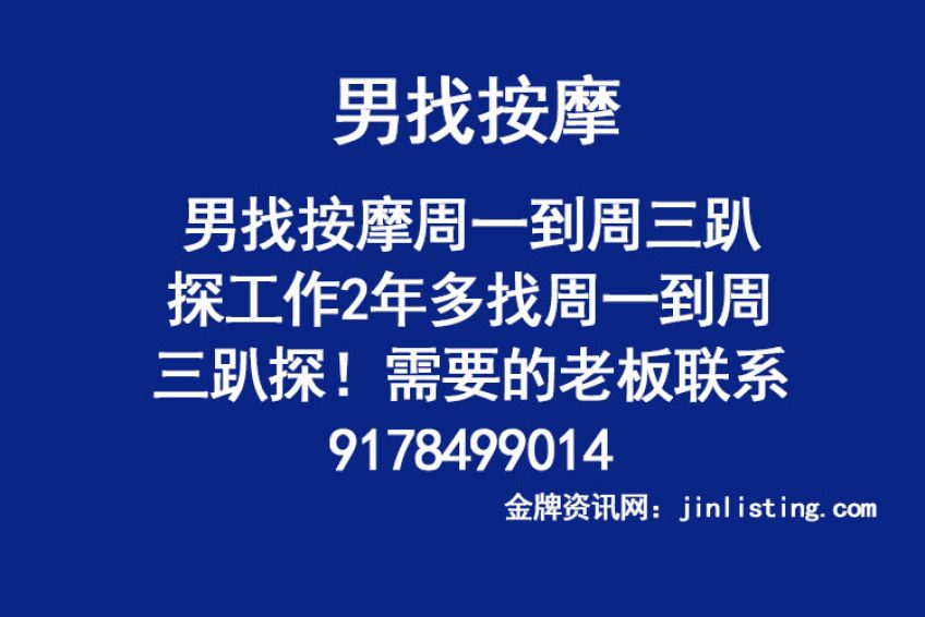 男找按摩周一到周三趴探 工作2年多找周一到周三趴探!需要的老板联系9178499014