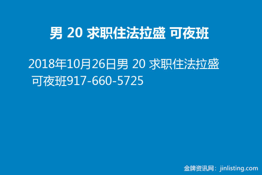 男 20 求职住法拉盛 可夜班917-660-5725