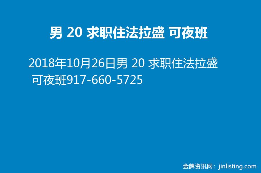 男 20 求职住法拉盛 可夜班 917-660-5725