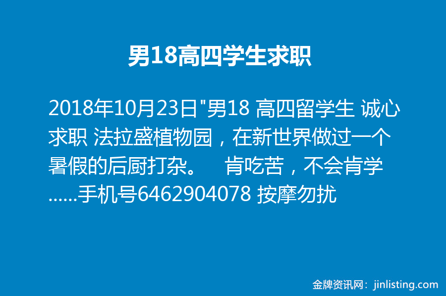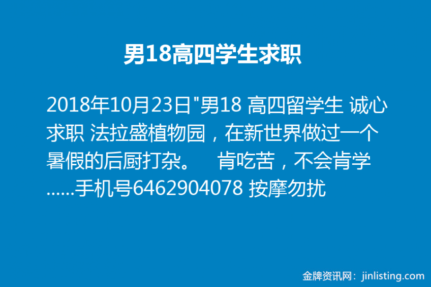 “男18 高四留学生 诚心求职