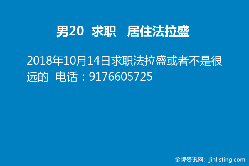 男20 求职 居住法拉盛917-660-5725