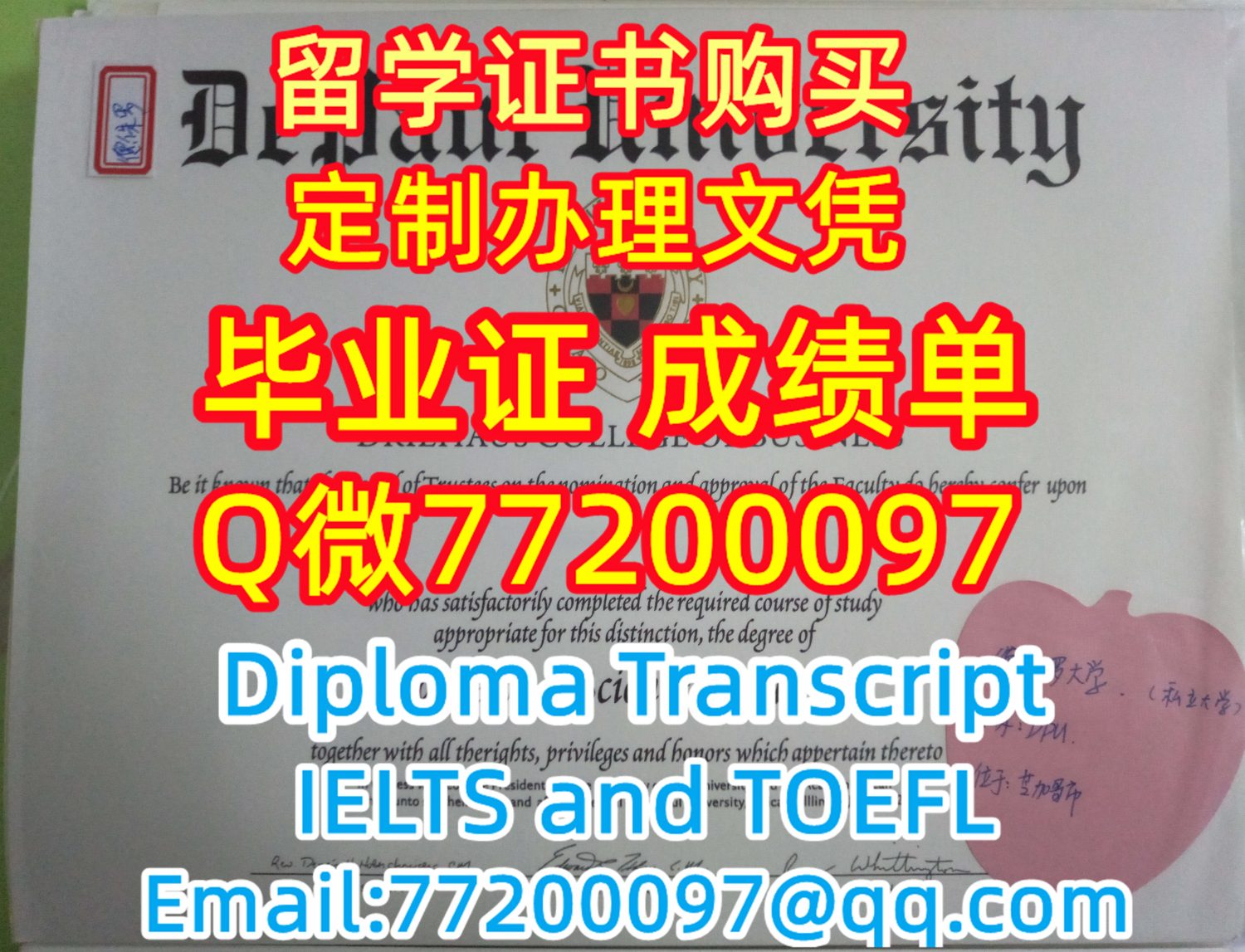 留学材料办理DPU毕业证成绩单专业办理德保罗大学毕业证书Q/微:77200097有DPU文凭证书精仿DPU学位证书能办DePaul成绩单制作德保罗大学文凭证书雅思托福University of Denver Bachelor/Master Diploma Degree Transcript
