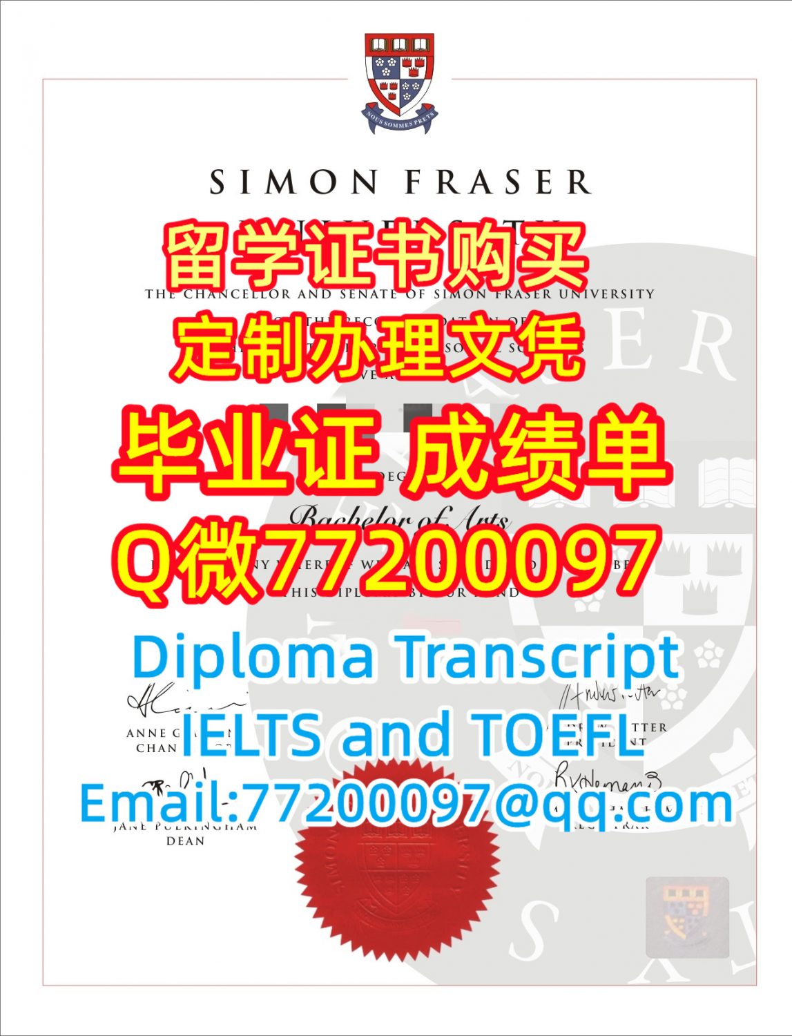 留学材料办理SFU毕业证成绩单专业办理西蒙菲莎大学毕业证书Q/微:77200097有SFU文凭证书精仿SFU学位证书能办SFU成绩单制作西蒙菲莎大学文凭证书offer雅思托福Simon Fraser University Diploma Degree Transcript