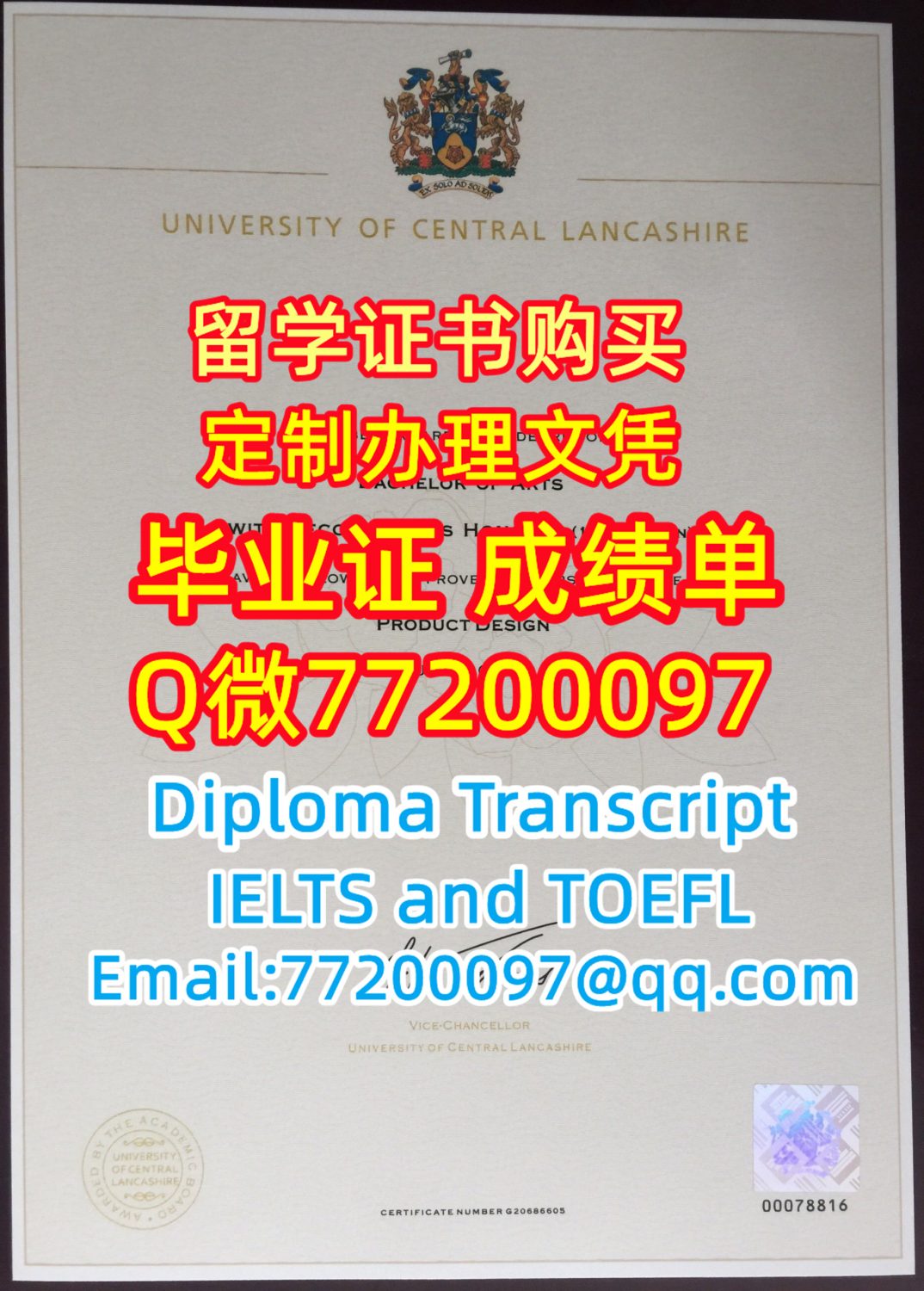 留学材料办理UCLan毕业证成绩单专业办理中央兰开夏大学毕业证书Q/微:77200097有UCLan文凭证书精仿UCLan学位证书能办UCLan成绩单制作中央兰开夏大学文凭证书雅思托福University of Central Lancashire Diploma Degree Transcript
