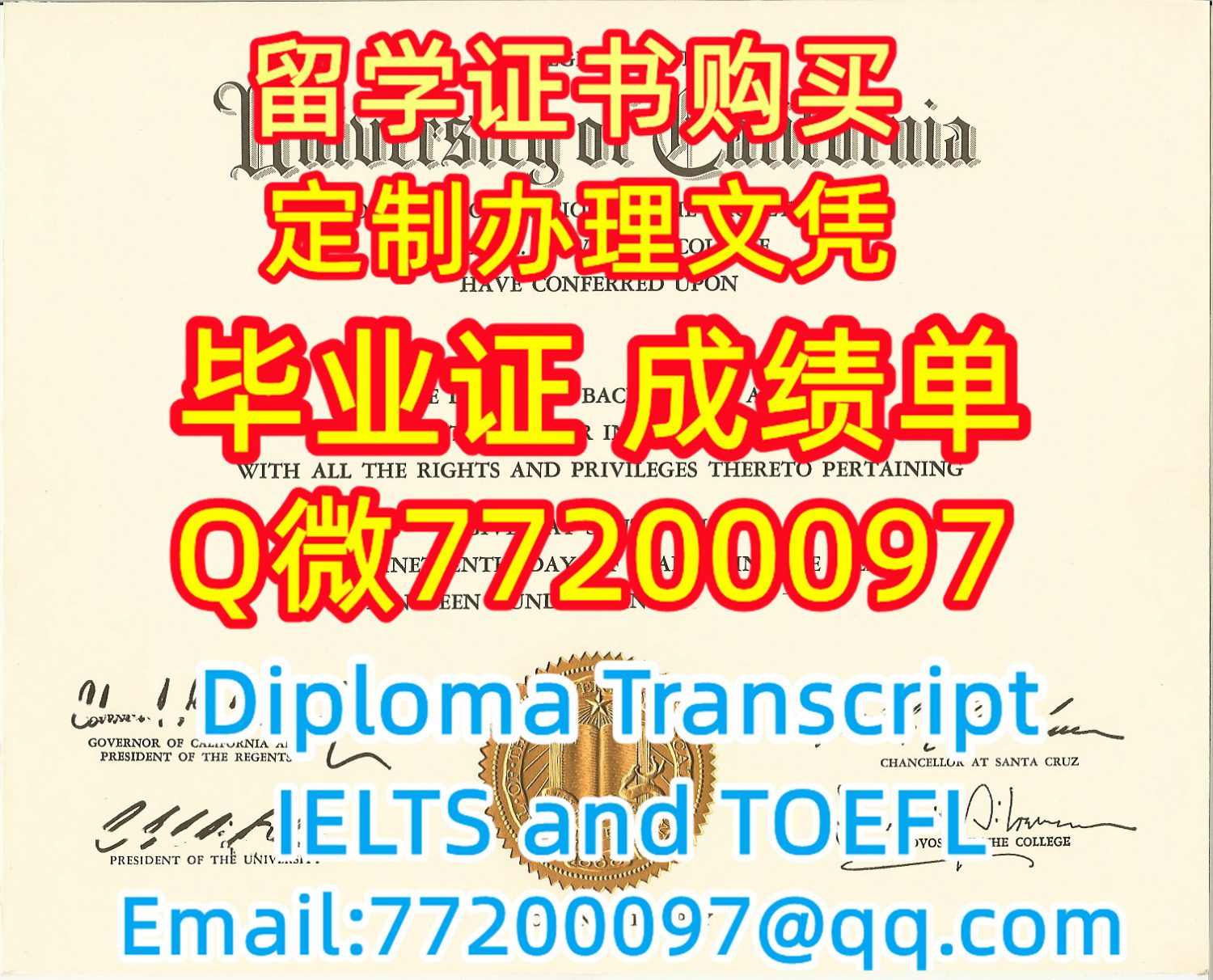 留学材料办理UCSC毕业证成绩单专业办理加州大学圣克鲁兹分校毕业证书Q/微:77200097有UCSC文凭证书精仿UC Santa Cruz学位证书能办Cal Santa Cruz成绩单制作加州大学圣克鲁兹分校文凭证书雅思托福University of California, Santa Cruz Bachelor/Master Diploma Degree Transcript