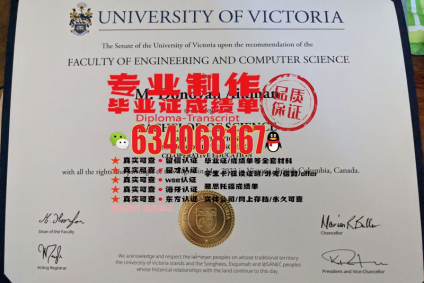 留学转学/紧急转学联系【QQ微信634068167】制作维多利亚大学(加拿大)University of Victoria毕业证成绩单加拿大学历文凭学生卡offer#ID卡留信留才认证offer#在读证明