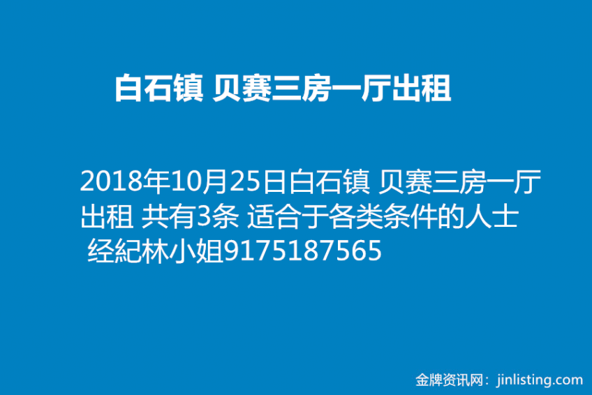 白石镇,贝赛三房一厅 经紀林小姐9175187565