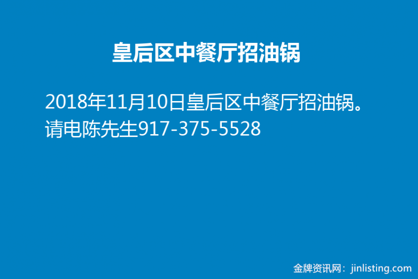 皇后区中餐厅招油锅。请电陈先生917-375-5528